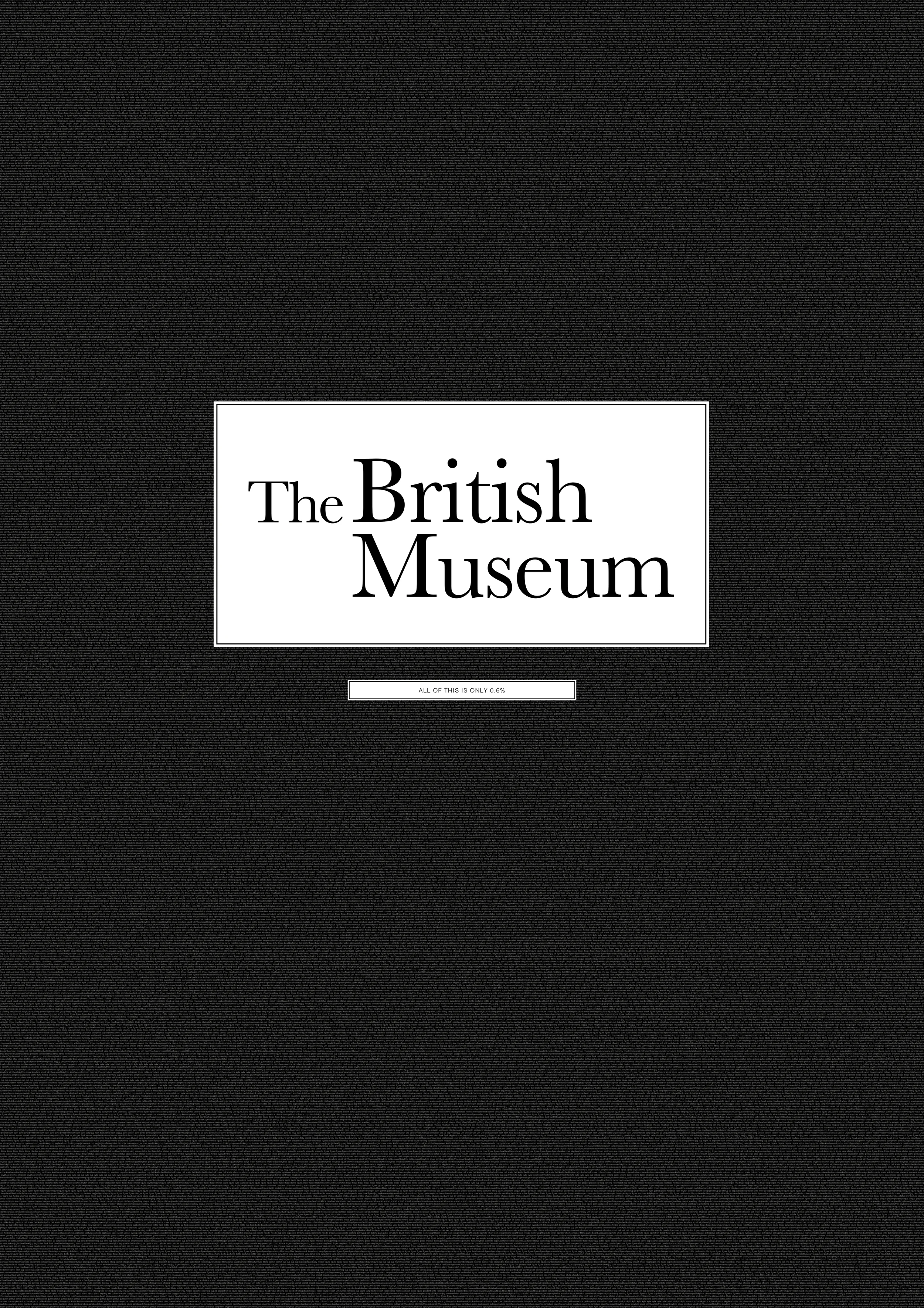 As a member of the British Museum, I found out that the entirety of what they display is only a fraction of what they have in their entire collection. They house 8 million artefacts but can only display 0.6% of that, I found this fascinating so I set myself a brief to create a typographic way to demonstrate this fact in an interesting manner in one week. I sent emails to countless curators and visited the museum on several occasions to establish a list of what they had on show and what was in storage. Eventually discovering the artefact names for all 50,000 items that are on show!